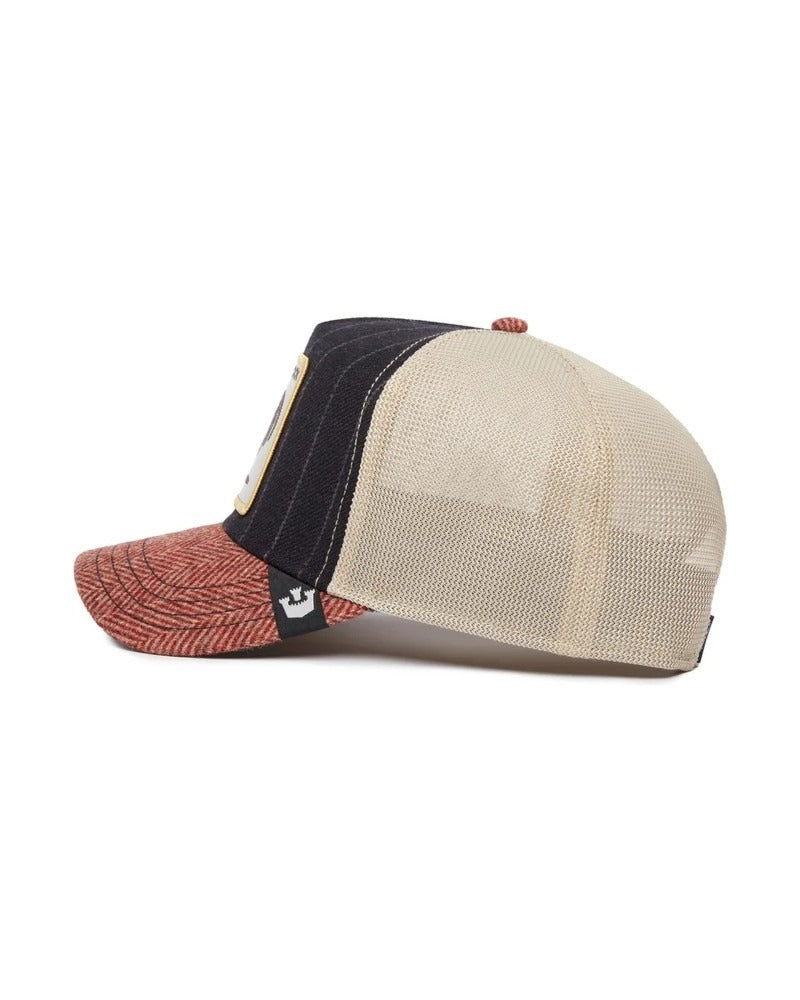 This trucker-style cap is a fashionable and functional accessory. It features an eye – catching embroidered patch of a rooster on the front, set against a navy blue front panel with white pinstripes. The mesh sides and back offer ventilation, while the herringbone – patterned brim adds a touch of style.