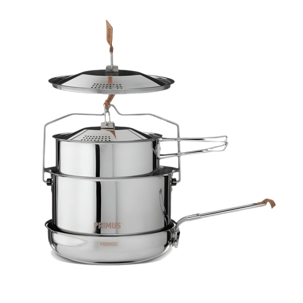 This cookset is ideal for camping, backpacking, and hiking trips. It’s great for preparing meals in the great outdoors, whether you’re sautéing vegetables in the frying pan, boiling water in the pot, or making a small sauce in the saucepot.